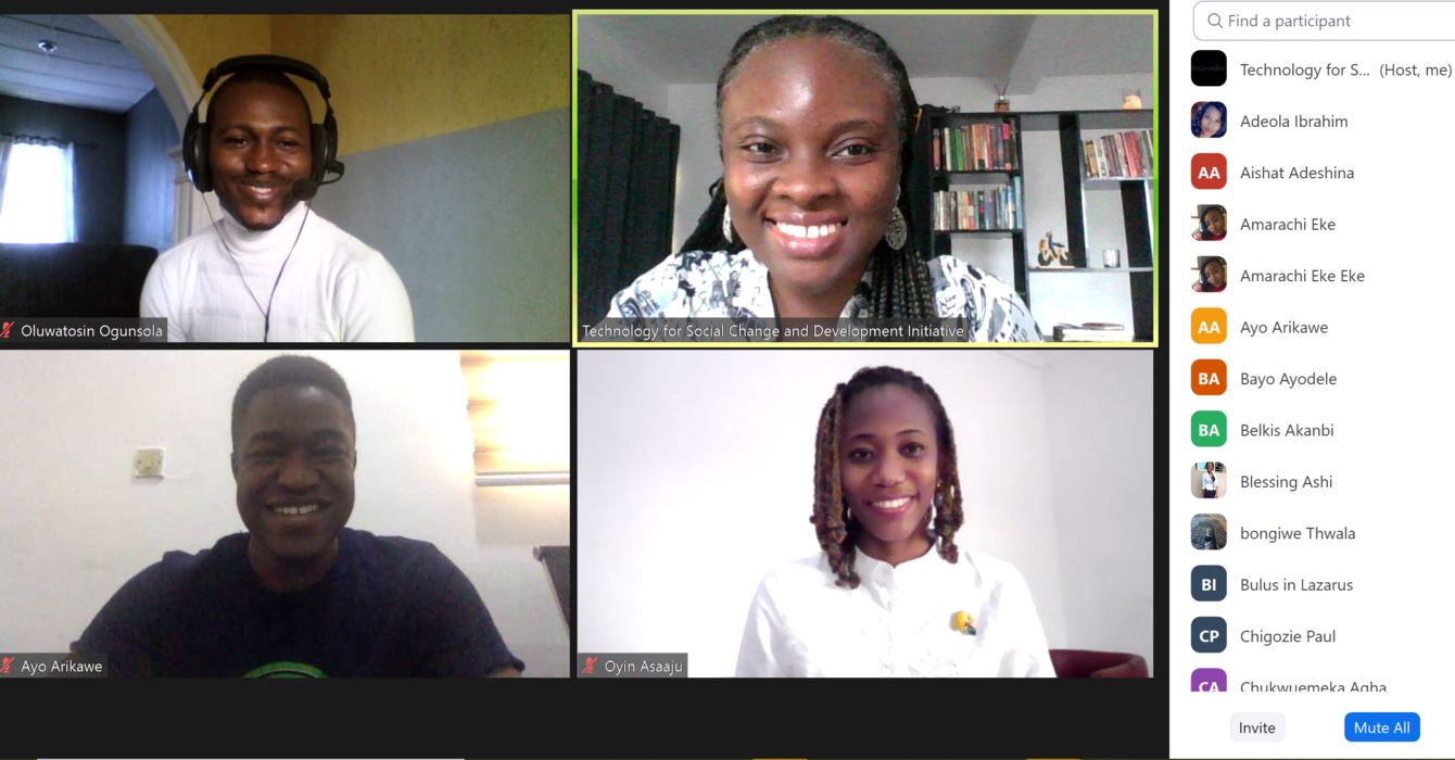 We hosted a virtual panel session with industry experts in the Agrotech/Agribusiness fields to mark International Youth Day. Two panels constituted the panel session. Our guest speakers for the first panel moderated by Yemisi Arowosafe, Communications lead, Tech4Dev were Ayodeji Arikawe, Co-Founder, Thrive Agric; Oyindamola Asaaju, Agribusiness Professional and Oluwatosin Ogunsola, Chief Executive, Templus Agro-Consults Limited.